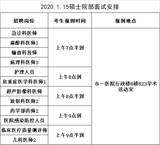 2020年1月14日入围科室实践技能测试和面试环节的考生,请在2020年1月15日参加面试。
