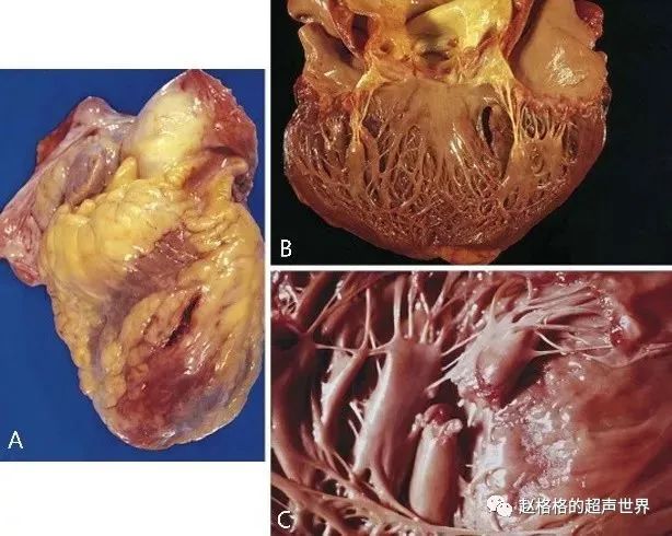 图A:左室游离壁破裂;图B:室间隔穿孔;图C:乳头肌断裂