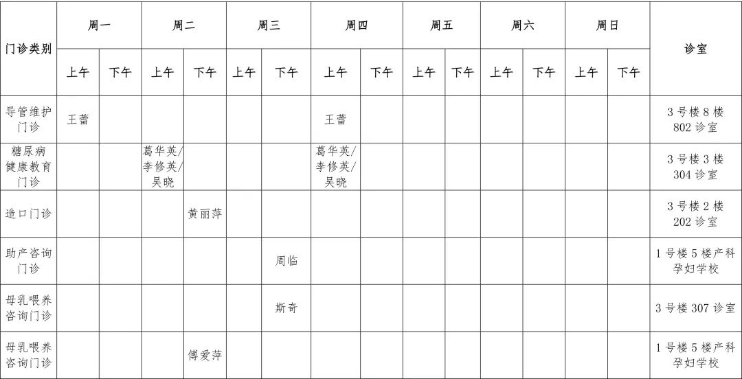 - 06-26 市一产科门诊一览表(2020年6月更新版)