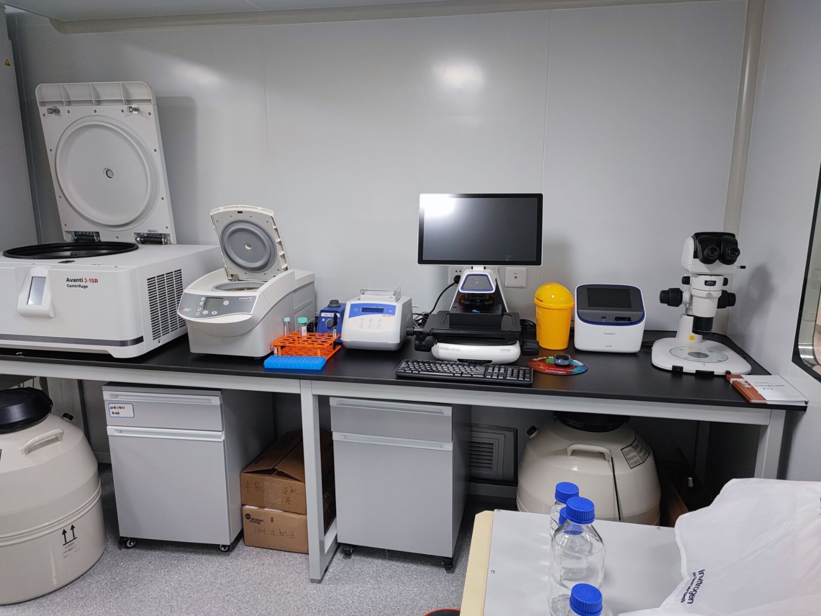 实验室面积300平方,拥有细胞实验平台(二氧化碳培养箱、活细胞倒置荧光显微镜、Agilent流式细胞仪、尼康体视显微镜、多功能酶标仪、生物安全柜等);分子生物学平台(荧光定量PCR仪、蛋白电泳系统、PCR仪、凝胶成像系统、高速冷冻离心机等);微生物实验平台(细菌摇床、细菌培养箱、超净工作台、低速离心机等);动物实验平台(线粒体功能测定仪、核磁小动物体成分分析仪、小动物能量代谢笼监测系统、小动物监测跑步机、抓力计、大小鼠移动式麻醉机、肌张力仪、小动物呼吸机、迈瑞监护仪)等,满足基础研究需求。目前开展的小动物代谢监测、流式细胞技术、多重核酸检测技术,属同行业国内领先水平。