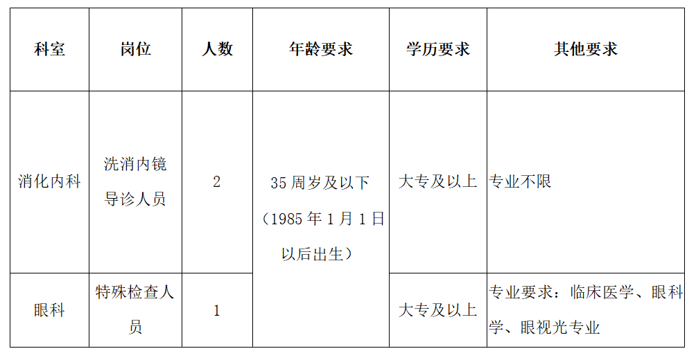2020年月消化内科、眼科编外人员招聘公告