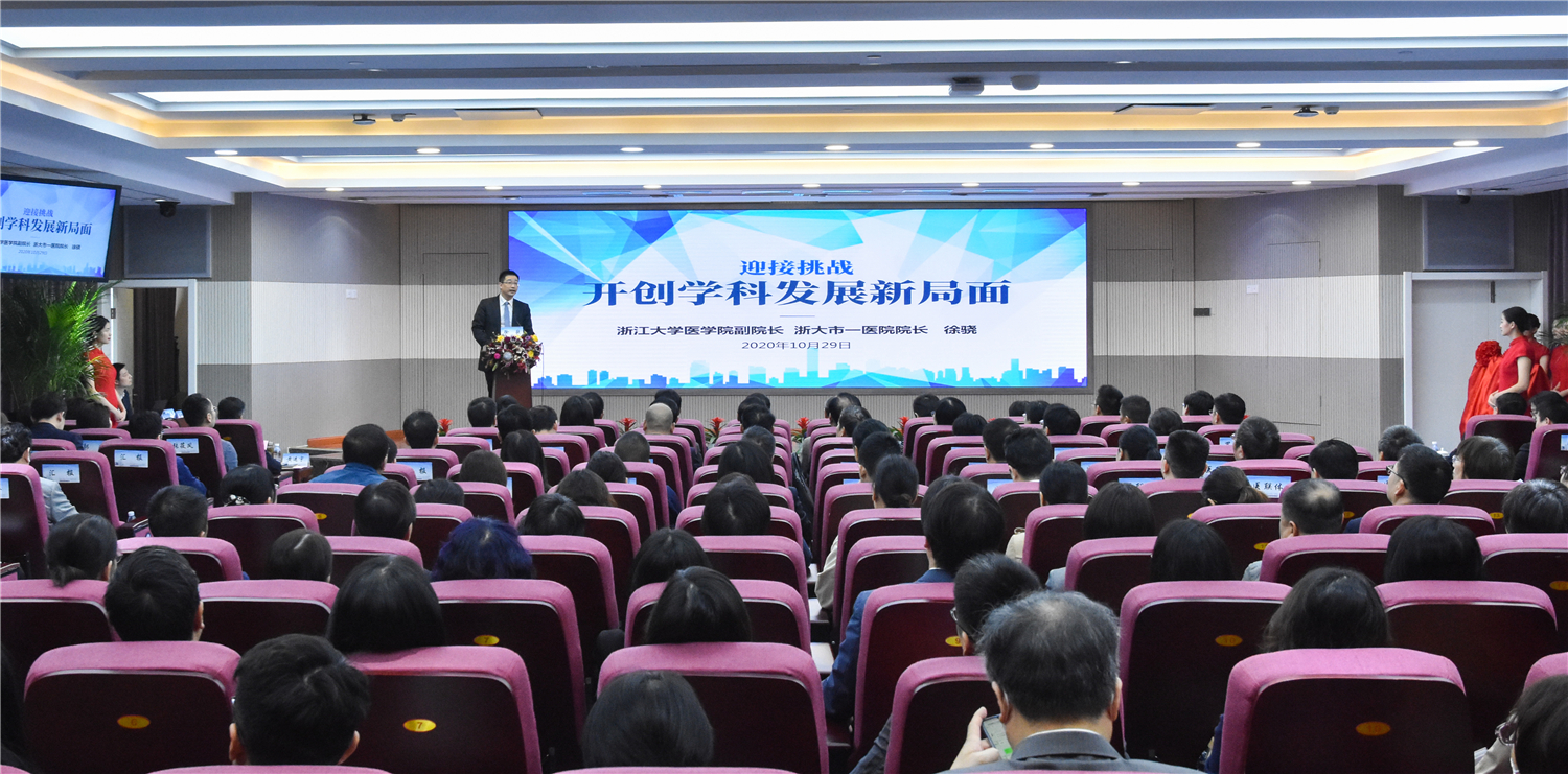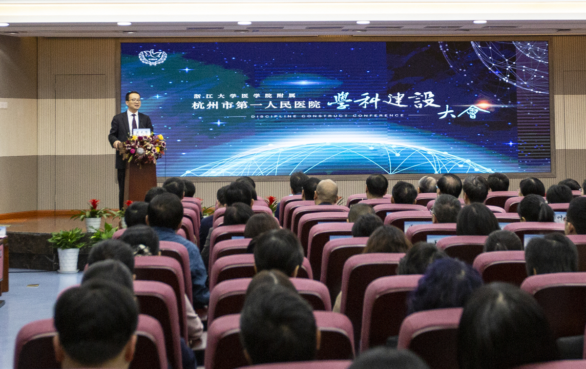 浙江大学医学院附属吃瓜网站 院长徐骁教授致欢迎辞。徐院长感谢各位领导和专家在百忙之中莅临市一吃瓜网站 ,参加学科建设大会。在浙江大学“双一流”建设和杭州市卫健委打造医学高峰的时代大背景下,市一吃瓜网站 召开学科建设大会,目的是让全体干部职工凝聚共识、坚定信心、明确目标,迎接挑战,开创学科发展新局面,实现百年市一的“全面复兴”!他深情回顾了市一近百年的发展史,昔日辉煌,重燃骄傲。凡是过往,皆为序章,迈进新时代,市一吃瓜网站 将致力于成为浙江大学医学教育教学示范基地;将打造更多的高峰学科和重点学科;将力争更多国家千万级大项目;将建设更多的省级重点实验室;将引育更多的高层次人才和学科带头人;将实现国家级科研奖项零的突破。
