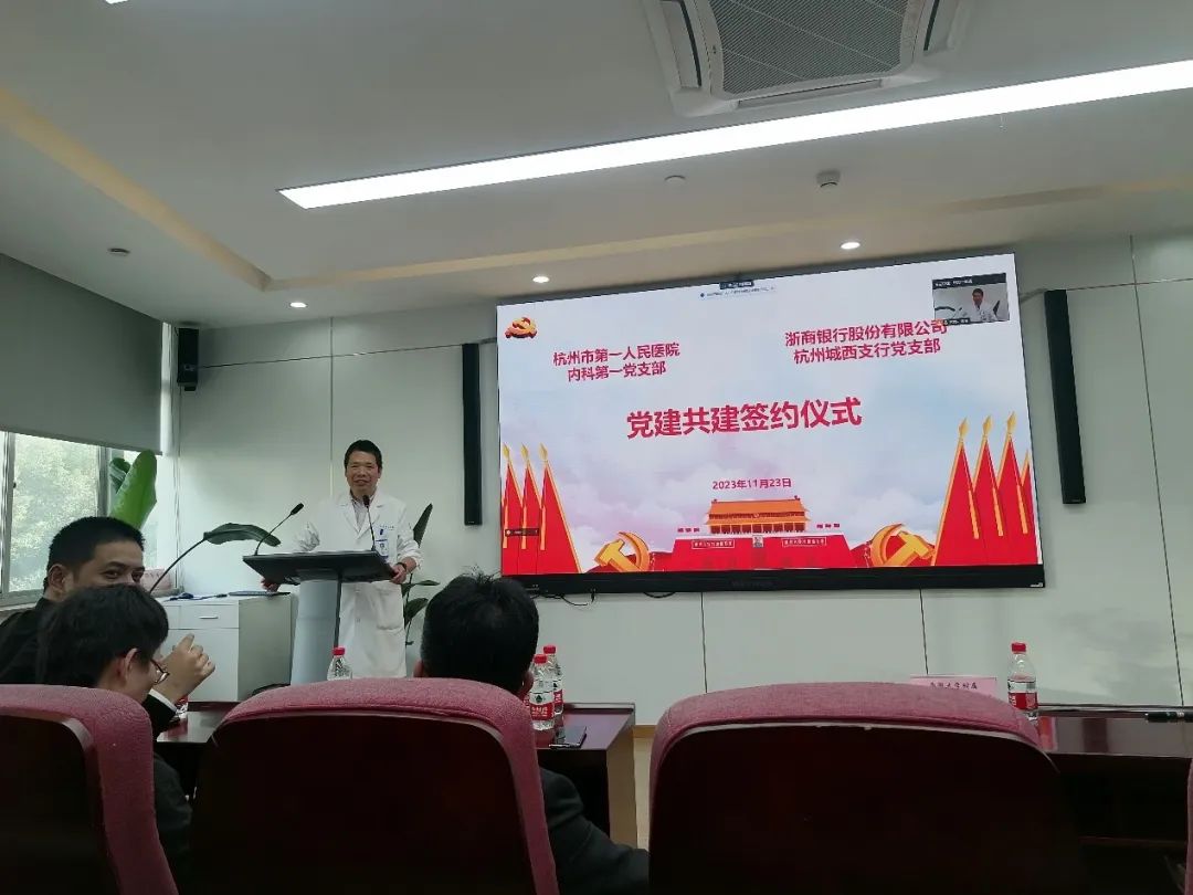 内科第一党支部支委及部分党员,浙商银行杭州城西分行领导班子及相关部门负责同志参加本次签约仪式。