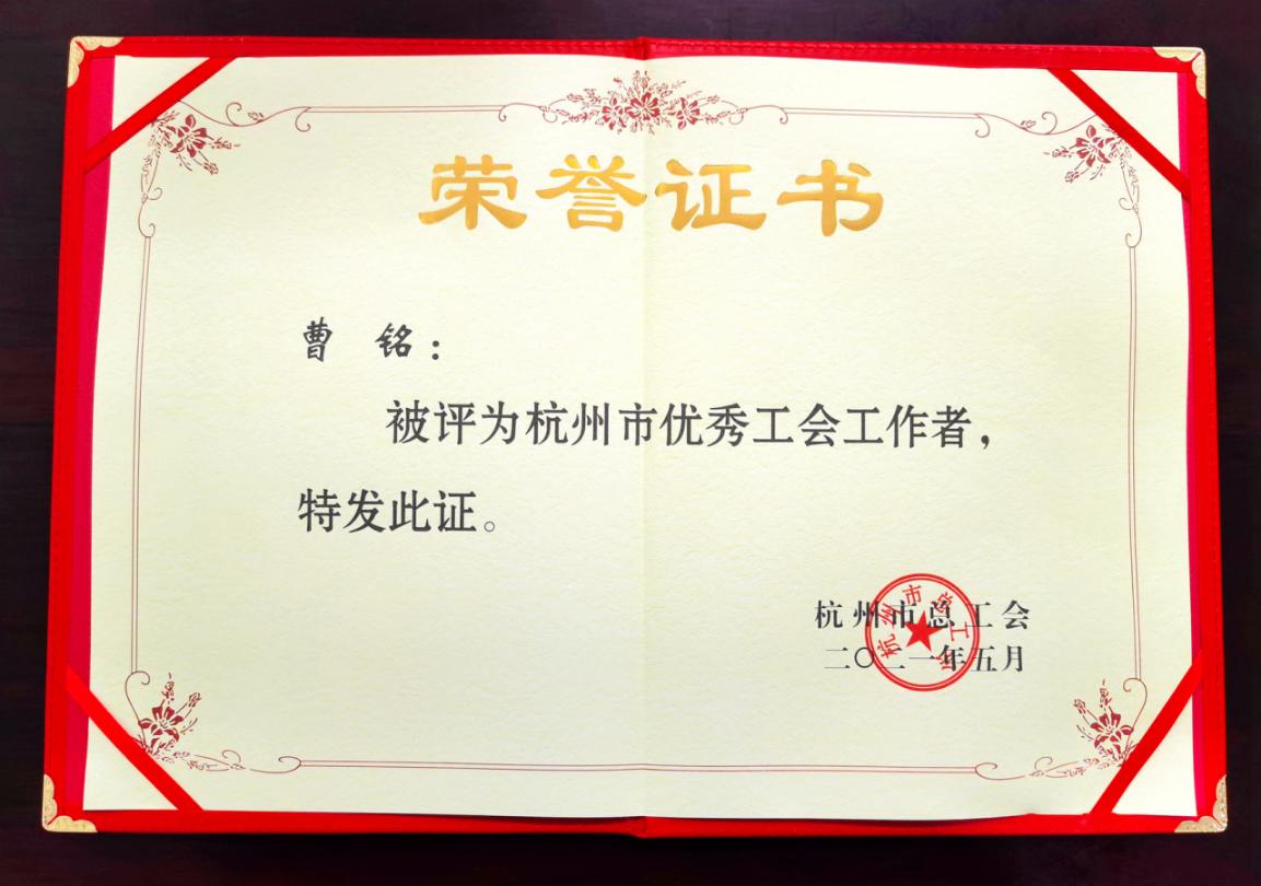 【喜报】工会曹铭荣获“杭州市优秀工会工作者”称号