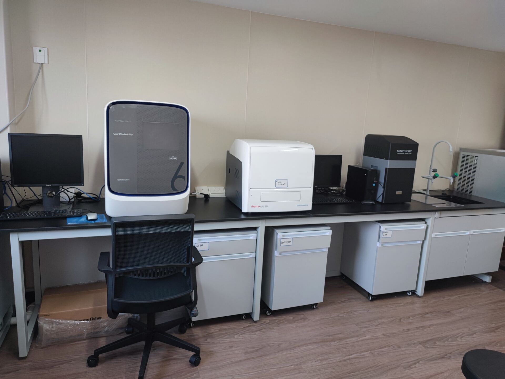 实验室面积300平方,拥有细胞实验平台(二氧化碳培养箱、活细胞倒置荧光显微镜、Agilent流式细胞仪、尼康体视显微镜、多功能酶标仪、生物安全柜等);分子生物学平台(荧光定量PCR仪、蛋白电泳系统、PCR仪、凝胶成像系统、高速冷冻离心机等);微生物实验平台(细菌摇床、细菌培养箱、超净工作台、低速离心机等);动物实验平台(线粒体功能测定仪、核磁小动物体成分分析仪、小动物能量代谢笼监测系统、小动物监测跑步机、抓力计、大小鼠移动式麻醉机、肌张力仪、小动物呼吸机、迈瑞监护仪)等,满足基础研究需求。目前开展的小动物代谢监测、流式细胞技术、多重核酸检测技术,属同行业国内领先水平。