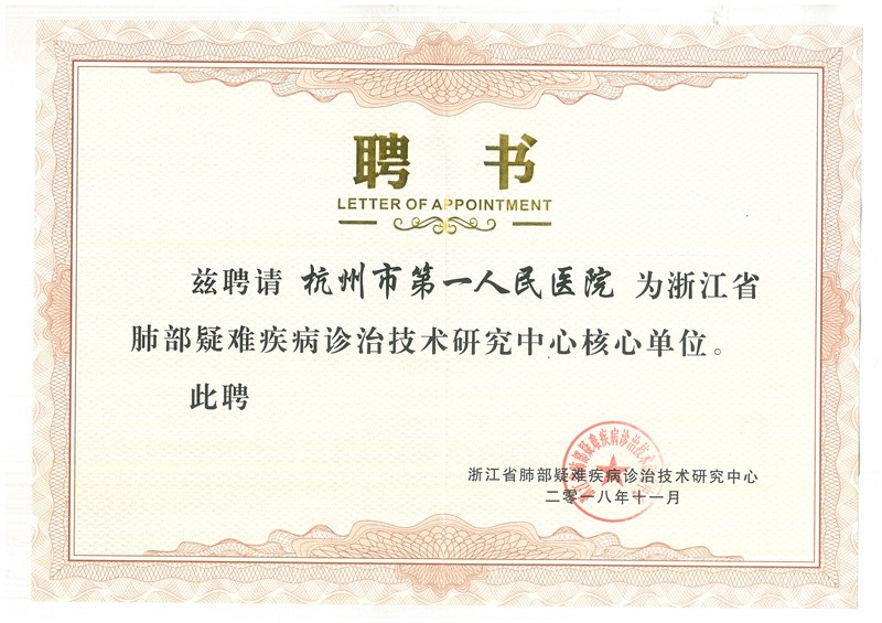 2025年5月,我院被确定为杭州市肺癌诊疗中心挂靠单位,为第二批11个市级专科(病)诊疗中心之一。