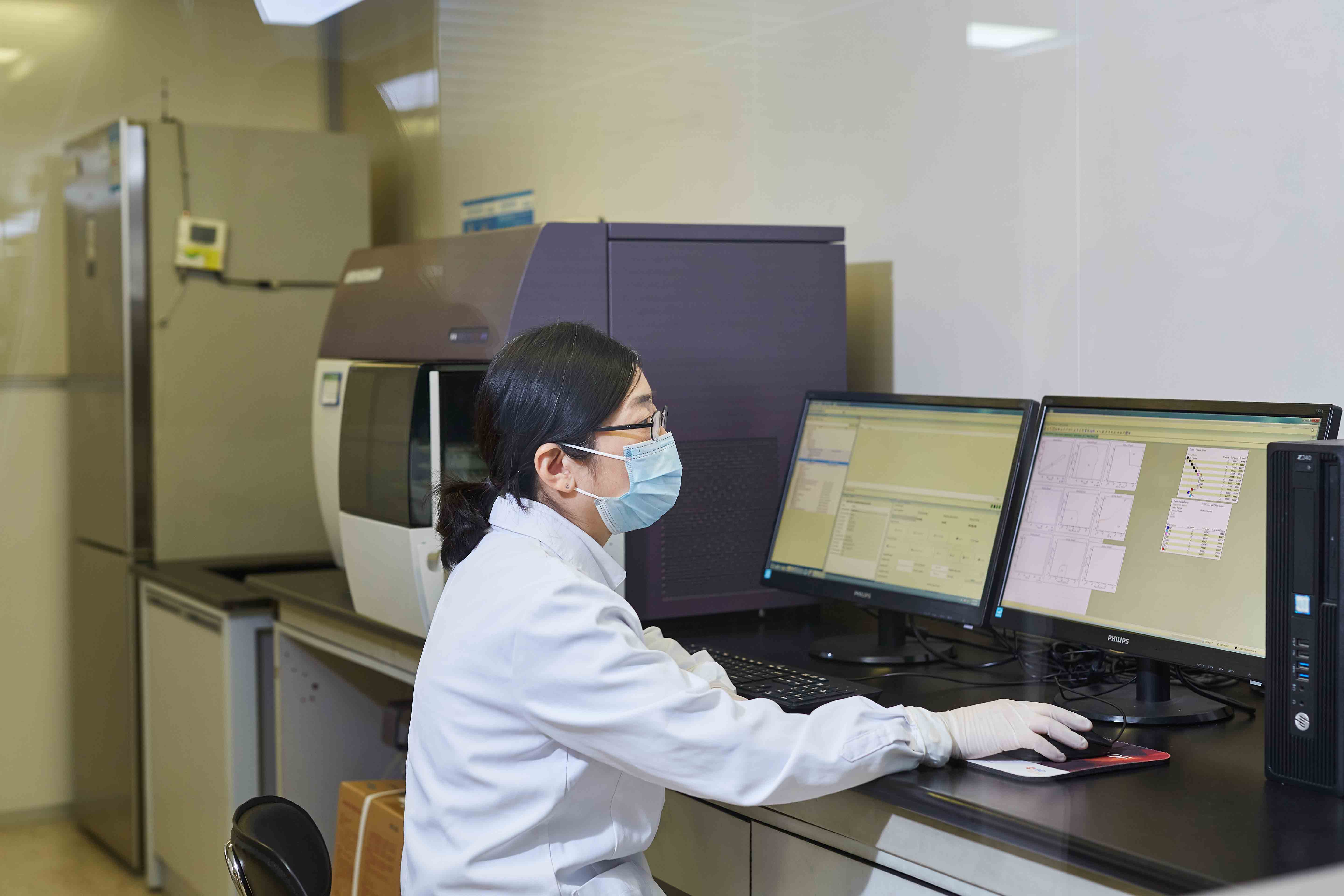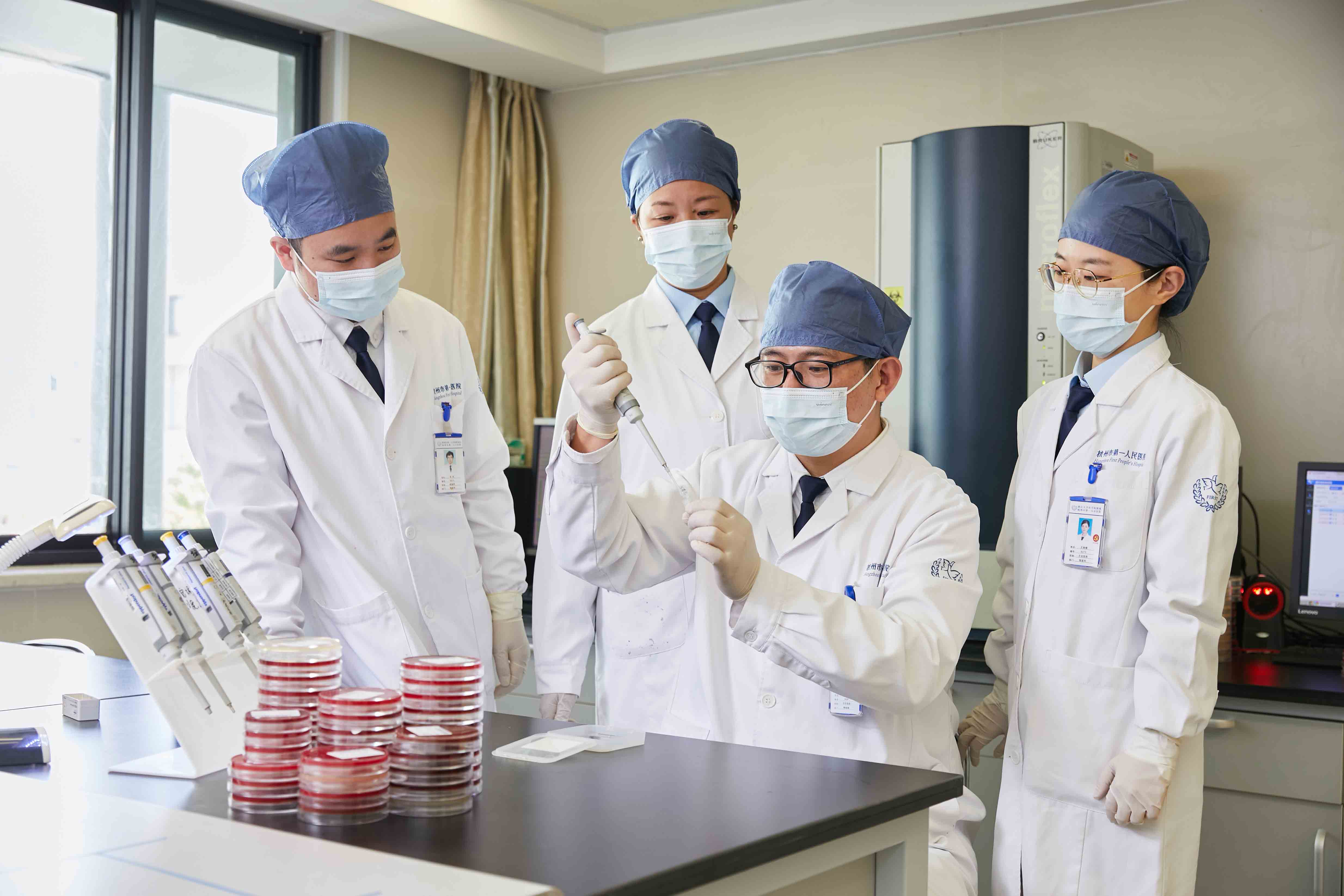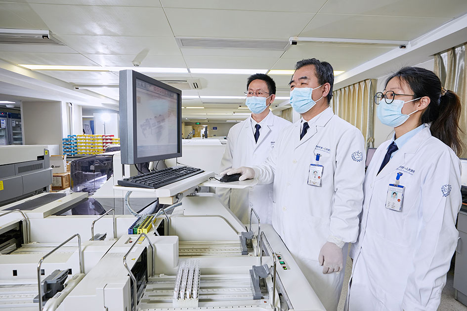 科室配备有先进的检测设备,其中包括全自动生化分析仪、全自动免疫分析仪、全自动血细胞分析流水线、尿流式沉渣分析系统、全自动血凝分析仪、血培养系统、快速生物质谱检测系统、药敏分析仪、厌氧培养系统、荧光定量PCR仪、基因芯片扫描仪、五人共览显微镜、基因测序仪等。