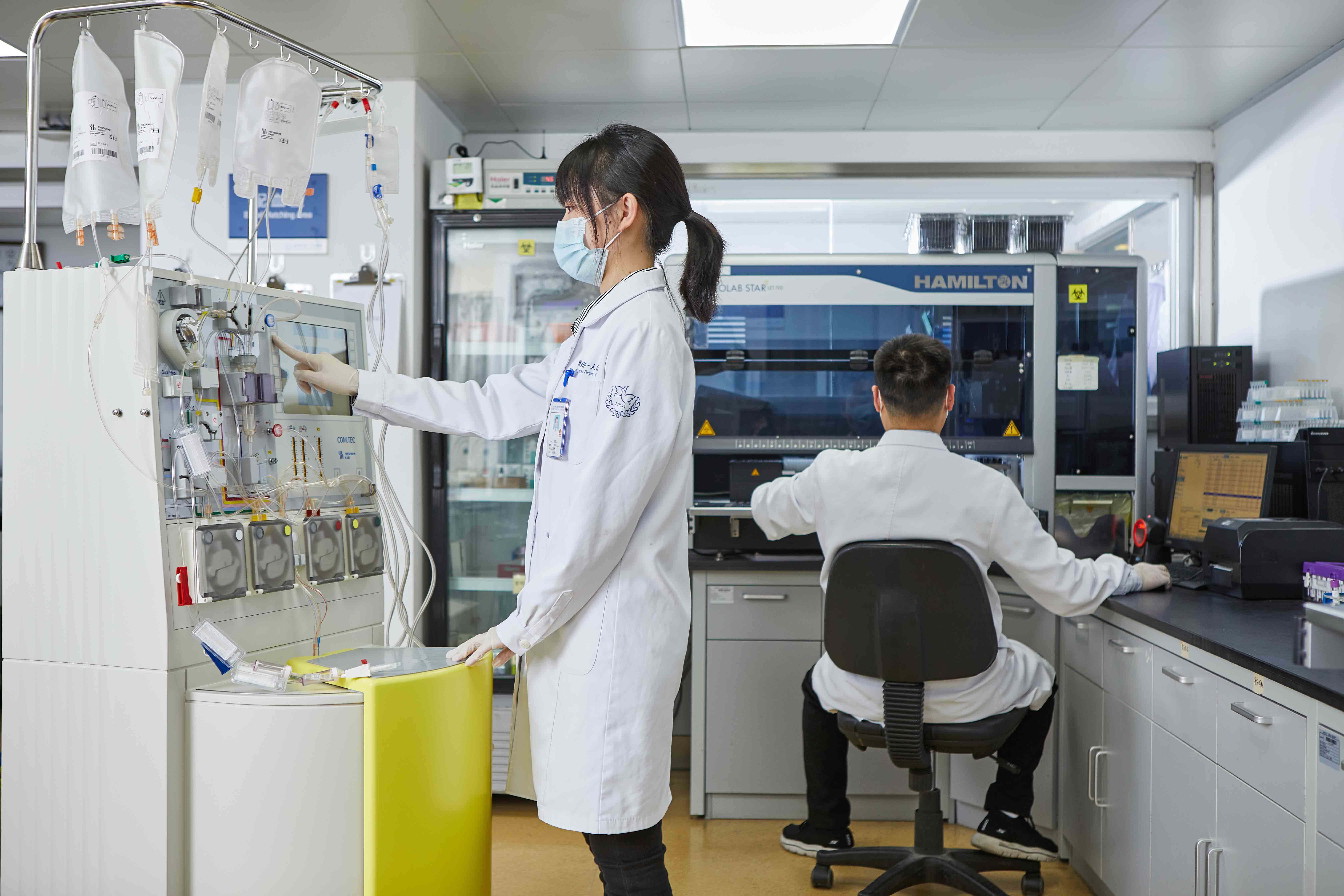 输血科成立于2006年6月,负责全院临床医疗用血的供应,输血医学教学和科研工作。现有职工9人,其中硕士研究生学历2人,大学本科7人。正高职称1人,副高2人,中级1人,技师5人。业务用房面积约160平米,设有血液处置室、储血室、发血室、血型血清学实验室、资料档案室、值班室、办公室和示教室等。科室实验设备齐全,技术先进,功能完备,有进口全自动血型配血系统、专用储血冰箱、低温及超低温冰箱、血小板震荡保存箱、血浆融化系统、冷链监控系统、临床输血管理系统等。目前开展的项目有:微柱凝胶交叉配血技术、新生儿溶血病的产前产后诊断、不规则抗体筛查和鉴定、直接间接抗人球蛋白试验、抗体效价检测、疑难交叉配血技术、稀有血型的鉴定、储存式自体输血技术等。供应临床的血液成分有:悬浮红细胞、去白细胞悬浮红细胞、洗涤红细胞、新鲜冰冻血浆、冰冻血浆、单采血小板、冷沉淀凝血因子、Rh(D)阴性血等。 现任科主任为中国心胸血管麻醉学会血液管理分会委员、浙江省医学会临床输血学分会副主任委员、浙江省输血协会常务理事、浙江省临床输血工作委员会委员、杭州市临床用血质量管理控制中心常务副主任。近年来,输血科职工主持临床用血管理科研项目三项,在核心期刊上发表论文数十篇。