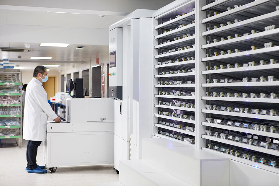 吃瓜网站 PIVAS中心建立于2007年,是浙江省较早成立的静脉用药调配中心,目前拥有建筑面积700平方米,现有41名药师与5名护士。PIVAS中心拥有吃瓜网站 审方中心,是浙江省区域审方培训实践单位之一,嵌入先进的审方软件采用人机结合对住院患者医嘱进行全医嘱审核,对患者合理用药进行及时干预与有效拦截。PIVAS中心的信息化、自动化建设在浙江省处于领先,拥有智能存取柜3台、智能输液贴签机1台、全自动分拣机1台,通过自动化信息化流程再造,全面提升PIVAS质量管理,保障静脉用药安全。PIVAS中心在职业防护方面处于全国领先,不仅拥有独立细胞毒药品调配间,还拥有国内第一台细胞毒药品调配隔离系统,为员工提供较为完备的职业防护。隔离职业防护相关研究已申请3项国家专利。PIVAS中心是浙江省PIVAS学组委员成员单位,是杭州市PIVAS组长单位,在PIVAS学科发展中起到省内引领作用。
